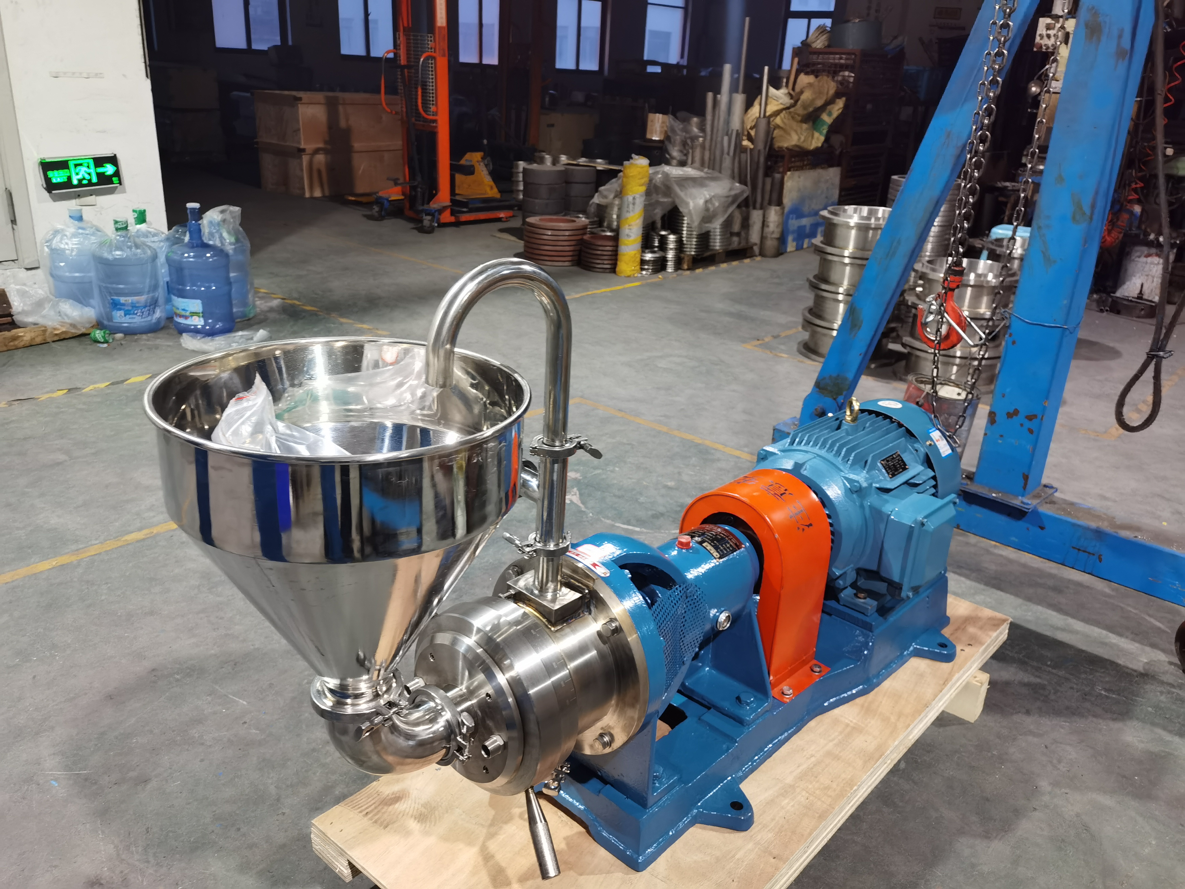 管線式研磨泵是由電動機通過聯軸器驅動研磨盤的動磨盤與相匹配靜磨盤作相對的高速旋轉,設備優點:同步運行,管道管線連接,設計合理, 體積小,穩定性良好,自動一體化.與其他管線式膠體磨設備相比如通過電機皮帶輪帶動叢動輪運行的皮帶、主叢輪因磨損、打滑而降低效能,另外如果皮帶裝置發生故障而電機照樣無效運行也無法觀察到等缺陷.所以本機的優勢顯而易見。并且定轉齒之間隙可調整,被加工物料通過本身的重量或外部壓力(可由泵產生)加壓產生向下的螺旋沖擊力,透過膠體磨定、轉齒之間的間隙時受到強大的剪切力、摩擦力、高頻振動等物理作用,使物料被有效地乳化、分散和粉碎,達到物料超細粉碎及乳化的效果。
